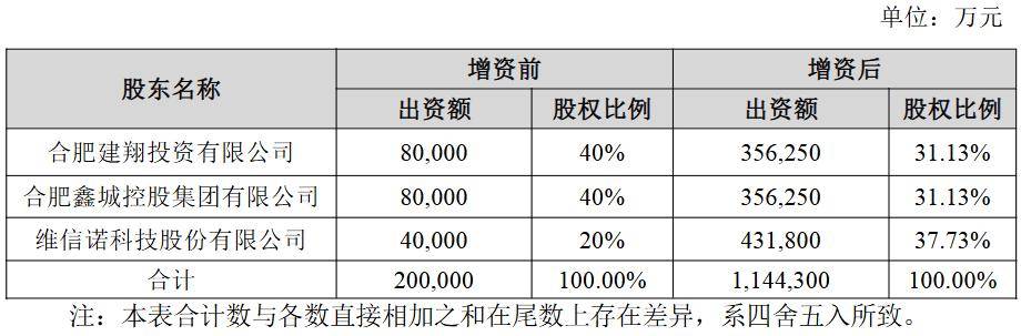 12月19日,维信诺发布公告表示,根据合肥国显第8.6代AMOLED生产线项目建设需求,公司与合肥建翔、合肥鑫城拟签署协议启动合肥国显二期资本金出资工作。第二期资本金为94.43亿元,其中合肥建翔出资27.625亿元,出资后持股比例31.13%,合肥鑫城出资27.625亿元,出资后持股比例31.13%,公司出资39.18亿元,出资后持股比例37.73%。二期资本金到位后,合肥国显注册资本增至114.43亿元,合肥国显仍不在公司合并报表范围内。
