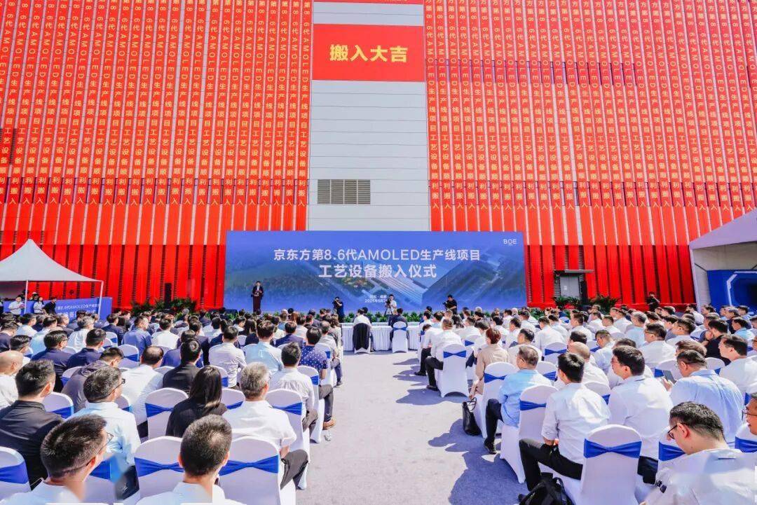 5月20日,国内首条第8.6代AMOLED显示器件生产线——BOE(京东方)成都第8.6代AMOLED生产线个月开始工艺设备搬入,创下全球同世代产线建设效率新纪录。